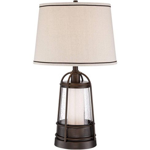 Franklin Iron Works Rustic Table Lamps 25 25 High Set Of 2 With Nightlight Miner Lantern Brown Oatmeal Drum Shade Living Room Bedroom Bedside Target